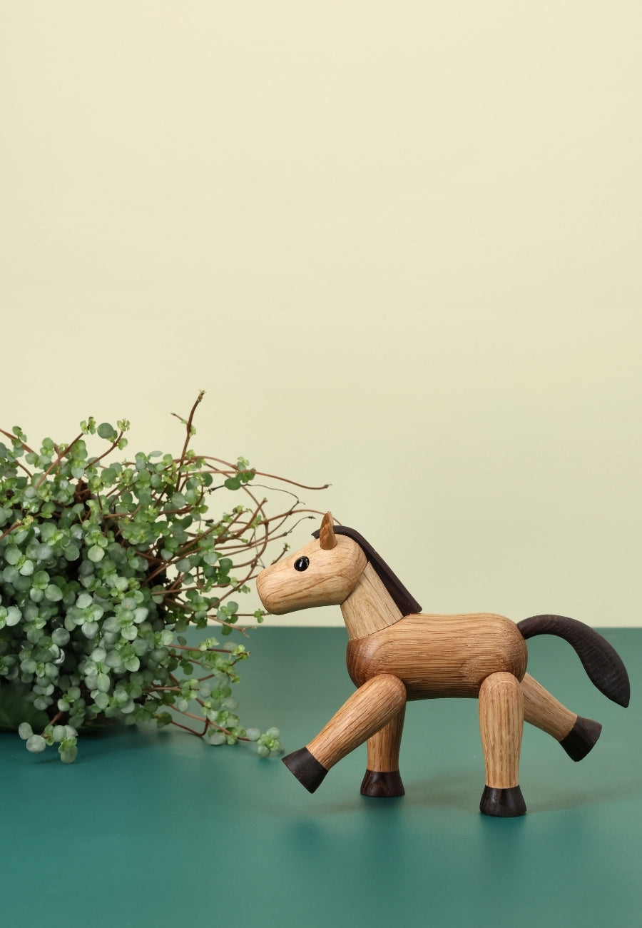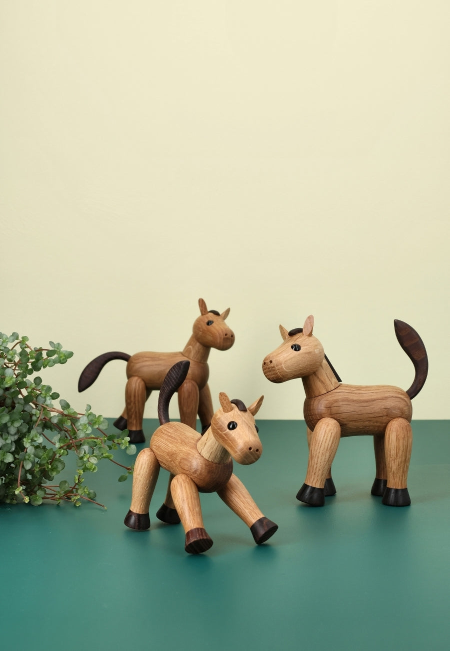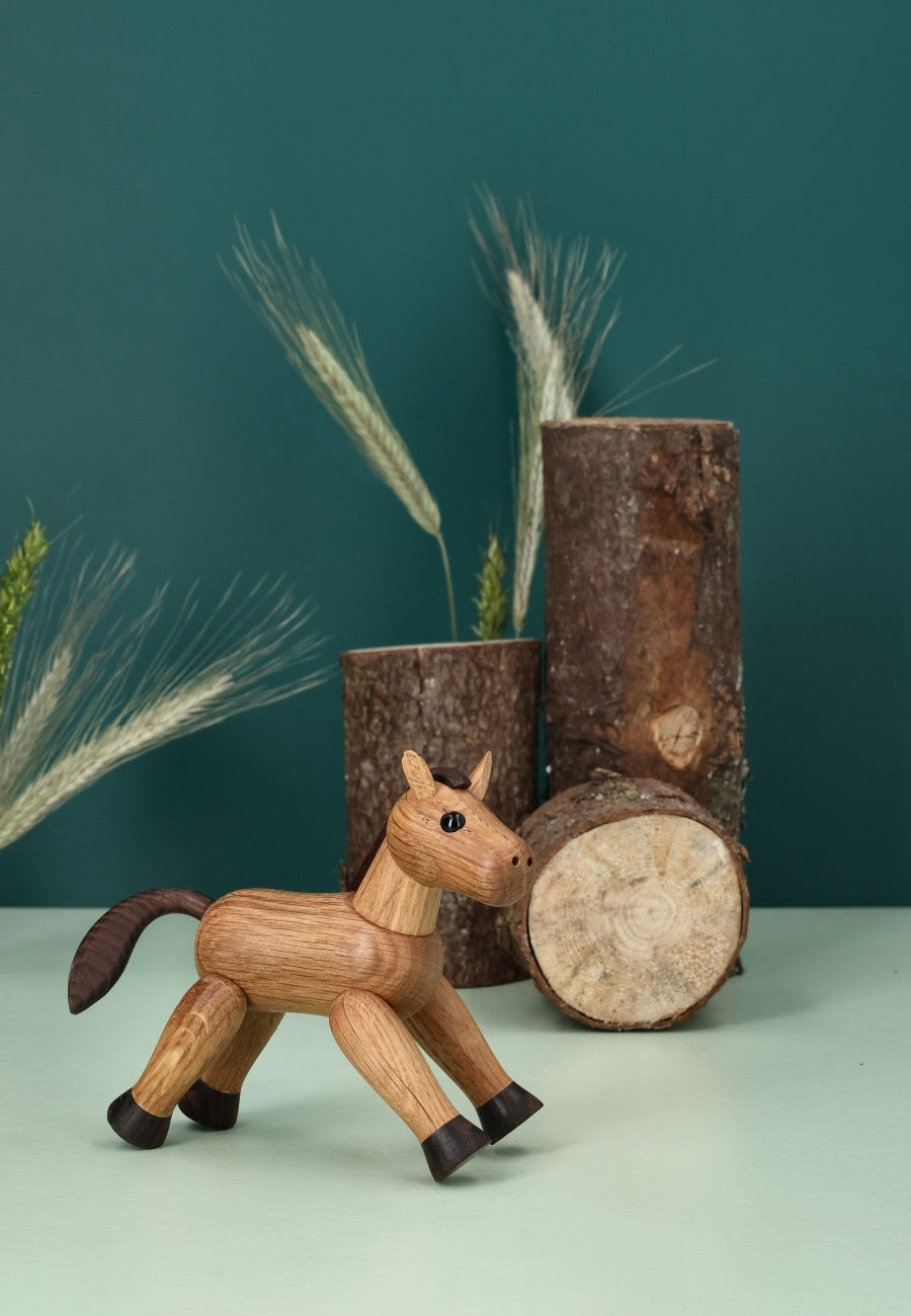 Comet är en livfull trähäst med fart, nyfikenhet och en glimt i ögat – skapad av den danske designern Chresten Sommer. Med sitt stolta uttryck, rörliga leder och pigga energi blir han en charmig hyllning till hästens fria själ.