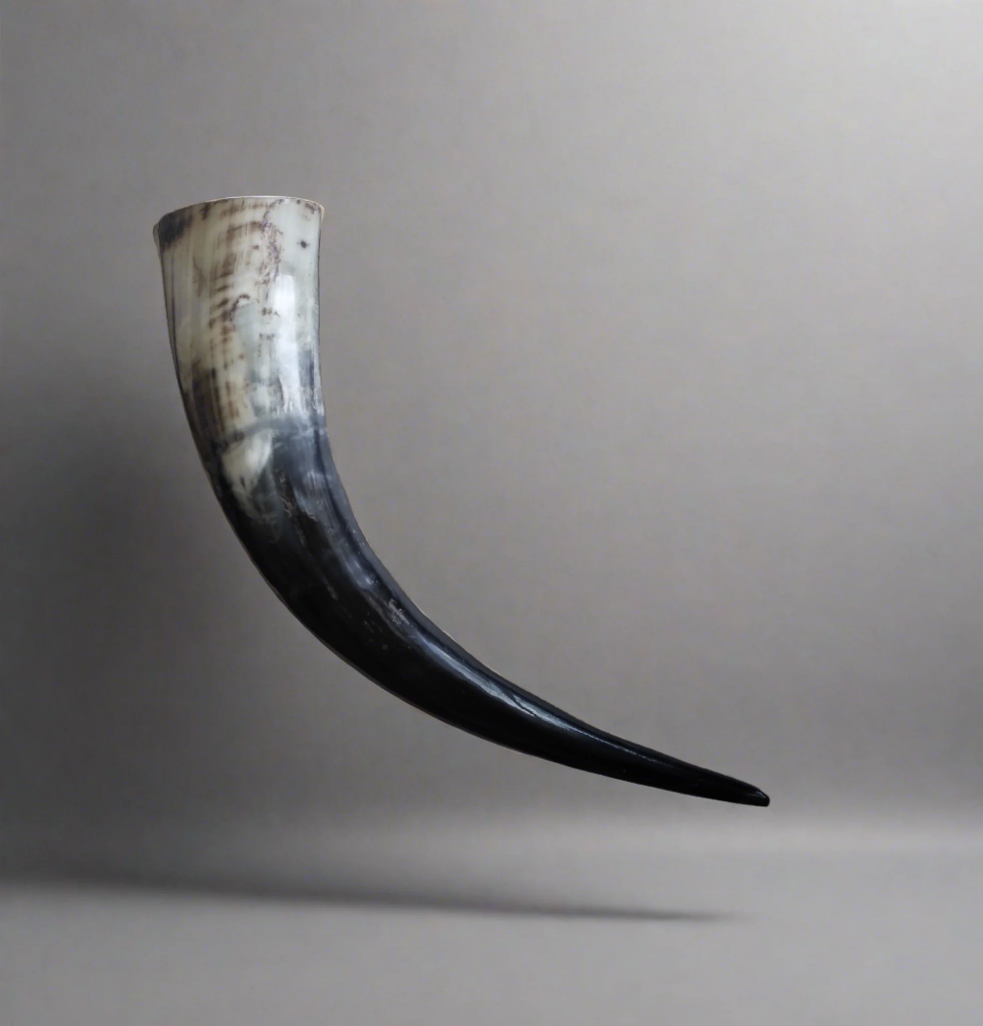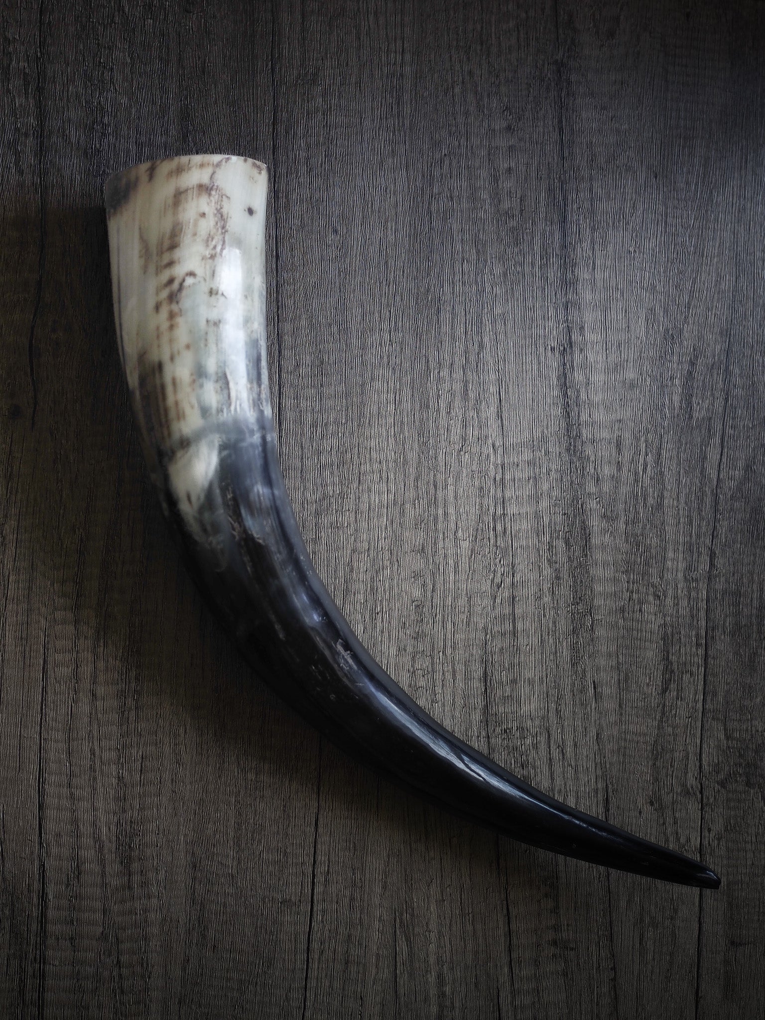 Dryckeshorn i krigarstorlek, rymmer en stor öl eller ca 500ml. En praktisk storlek som fungerar lika bra idag som den gjorde för 1000 år sedan. Handgjort i naturligt oxhorn och finns i två varianter. En med en polerad finish och en där vi bevarat mer av den naturliga ytan. Tänk på att horn är ett naturligt material och att alla horn är unika vad gäller form och färg. Har du särskilda önskemål om färg, så skriv till os om det i chatten. Alla våra dryckeshorn är lackade invändigt. Vi gör alltid vårt bästa för att välja ett snyggt horn åt dig efter eventuella önskemål.