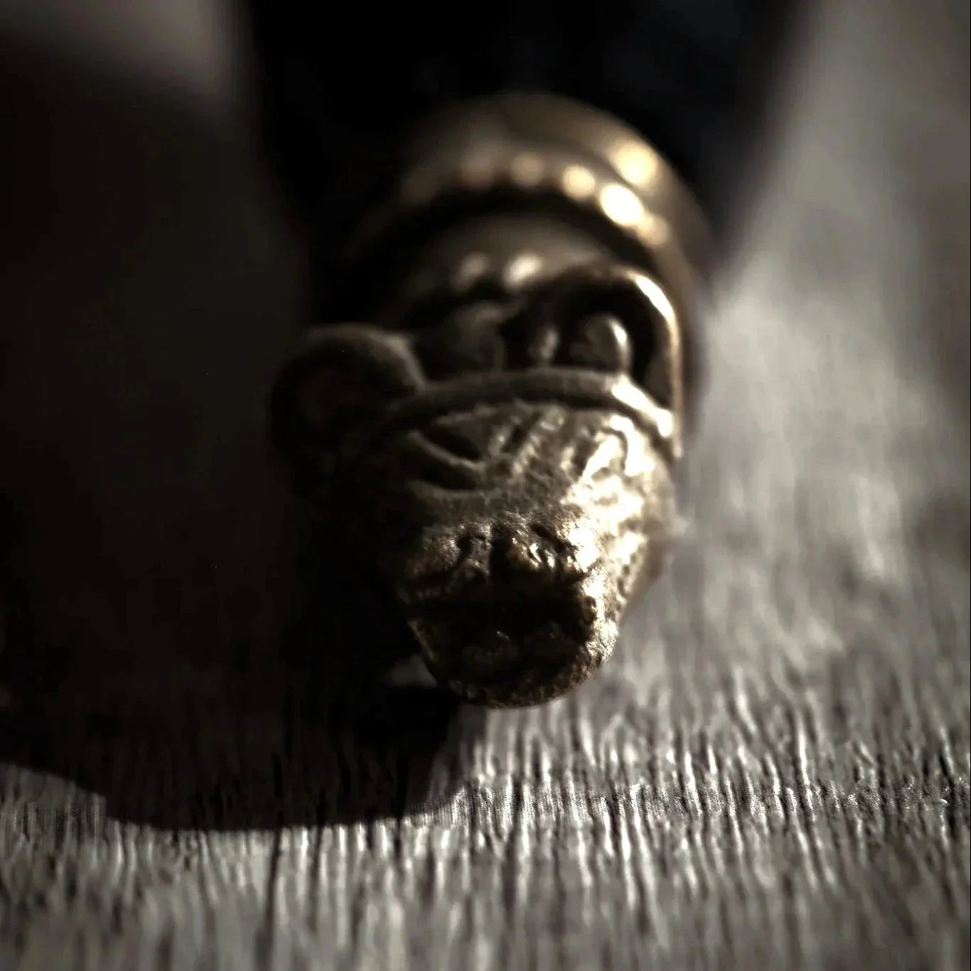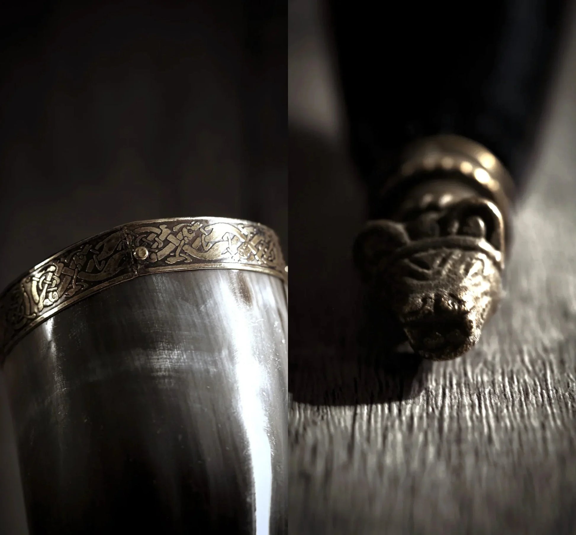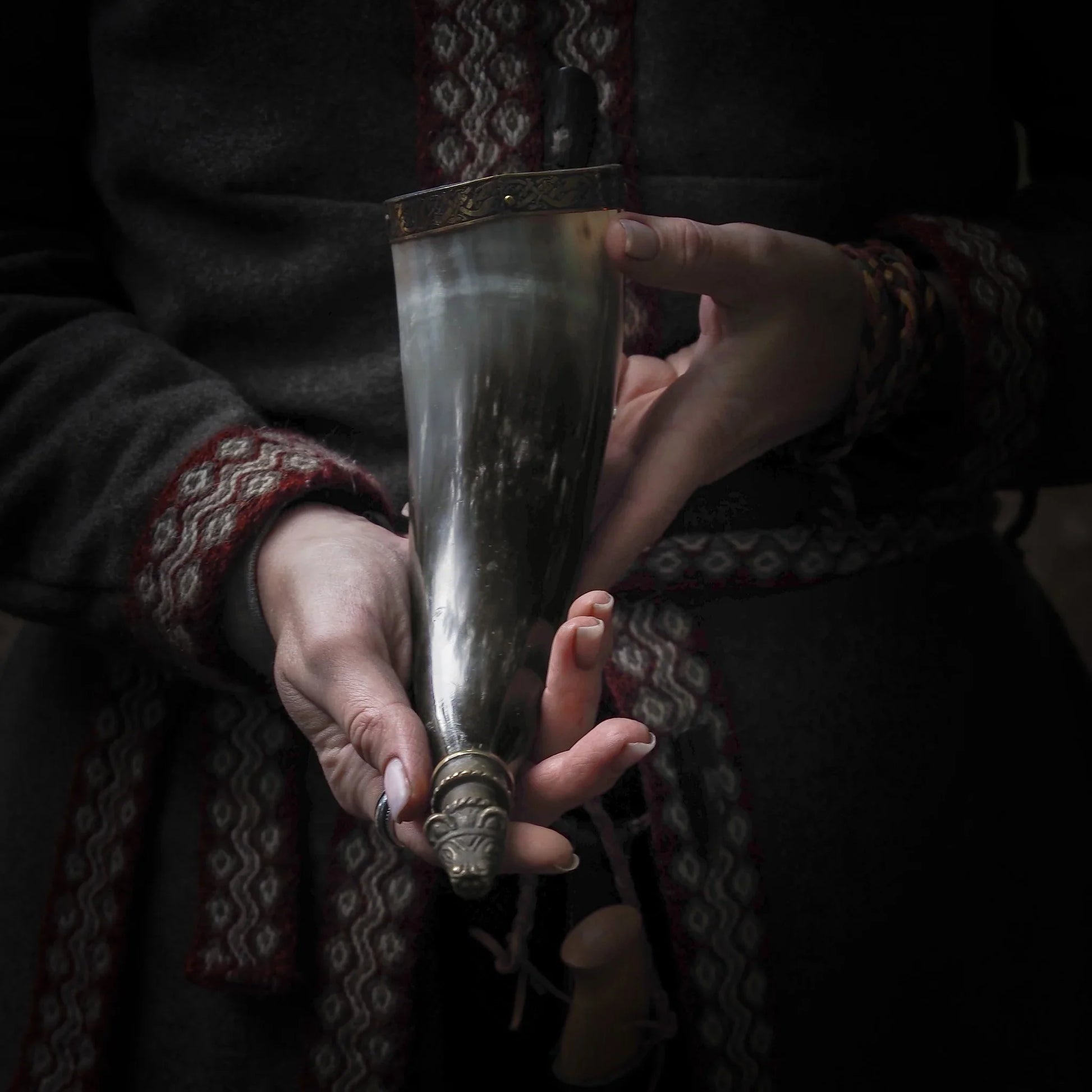 Bärsärkarna var krigare starka som björnar. Styrkan och vildheten gjorde dom fruktade. Denna hornände formad som ett björnhuvud symboliserar styrka och uthållighet.