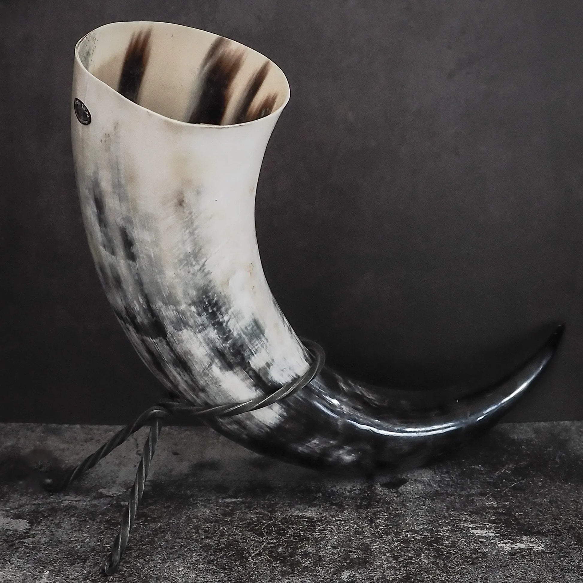 Dryckeshorn Jarl, ca en liter. Denna storlek är för den som vill att hornet ska delas med vänner. Passar även bra som statushöjare på festen eller i bokhyllan. Tänk på att horn är ett naturligt material och att alla horn är unika vad gäller form och färg. Du kan även ange en önskad färg, vi försöker då matcha med det vi har i lager. Alla våra dryckeshorn är lackade invändigt med födogodkänd lack.