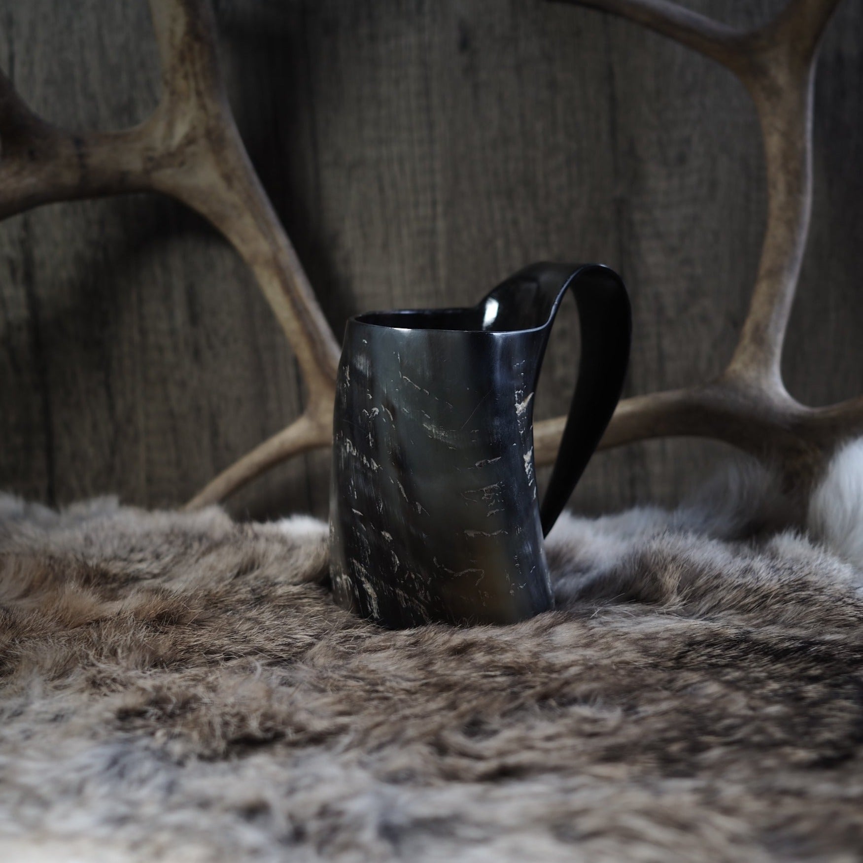 Nordlys Viking presenterar stolt världens första kaffemugg i horn, som garanterat håller för alla varma drycker. Den kan givetvis även användas till andra, både varma och kalla drycker. Så den passar lika bra till te, öl, vatten eller läsk.
