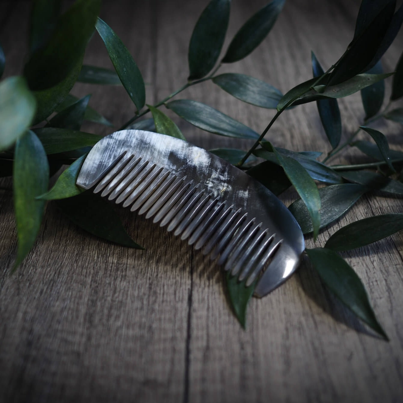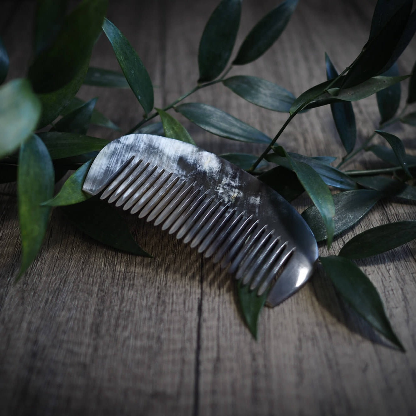En vacker hornkam i en behändig storlek. Denna bågformade kam lämpar sig för alla hårtyper och ändamål. Med sina 10x4 cm kan man ha den i fickan, väskan eller i en pung utan problem. Vi gör uppmärksam på at alla hornprodukterna är unika i sina färger.