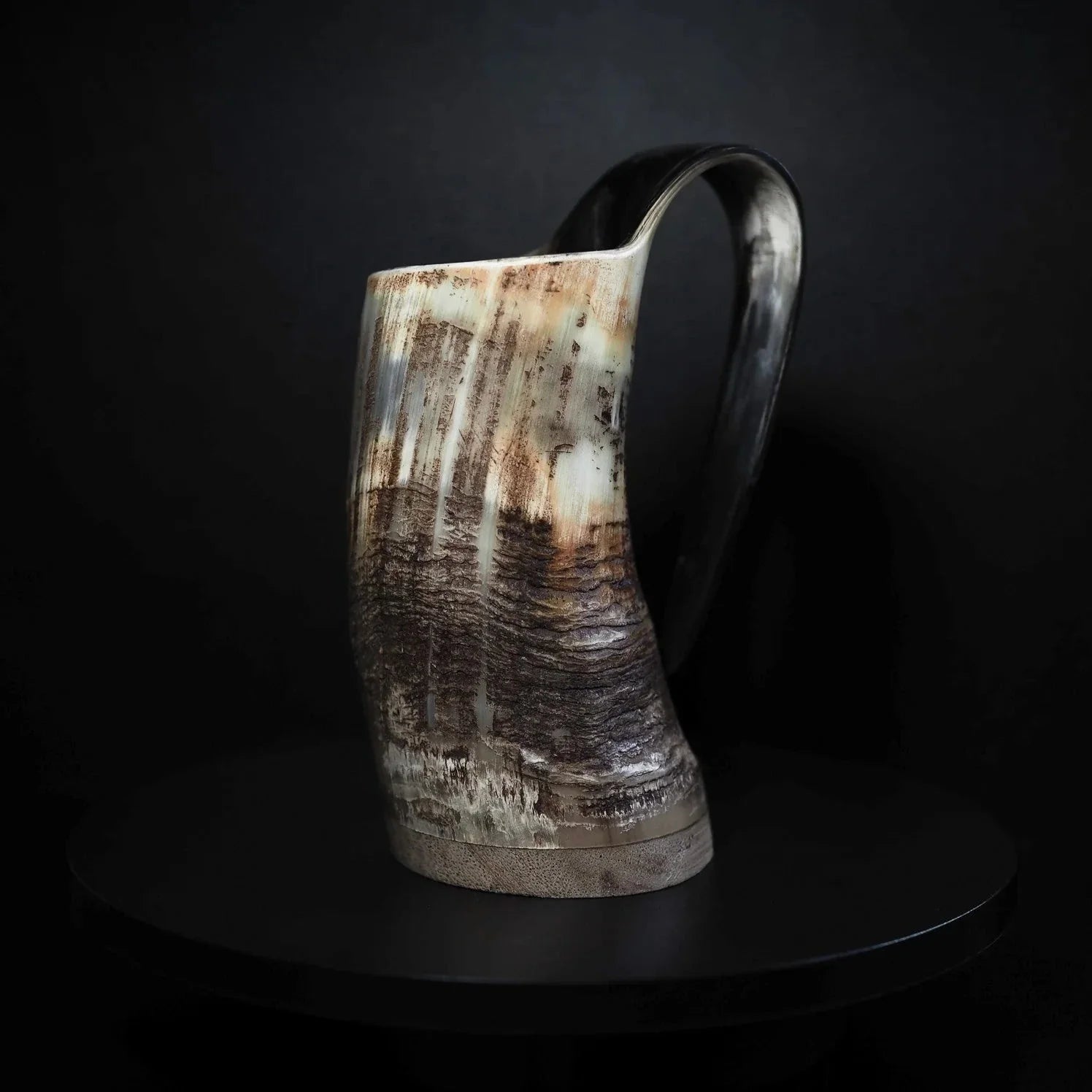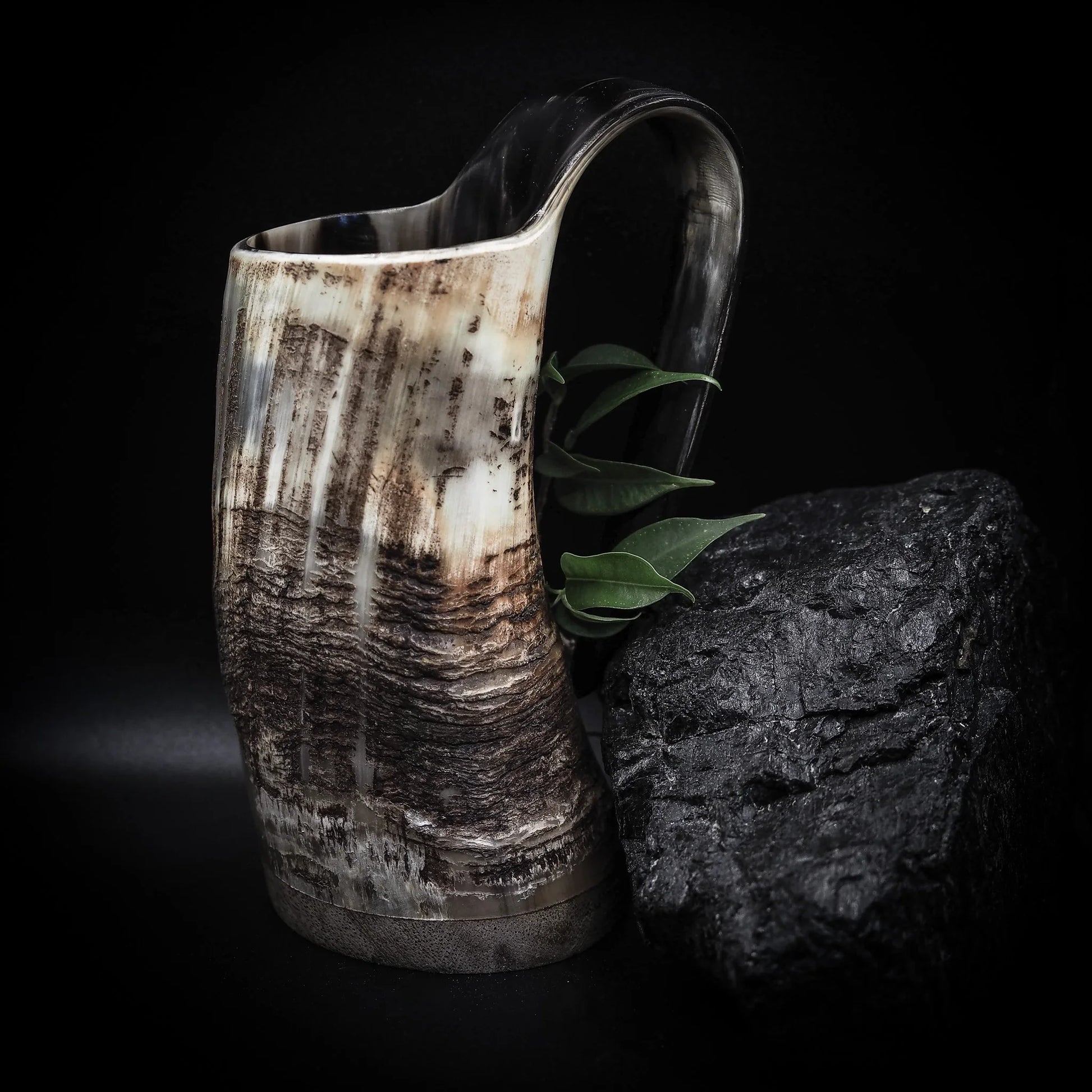 Vårt mindre krus Balder rymmer ungefär 350 ml. Ett äkta hedniskt ölkrus. Finns med två alternativ av finish. Helt polerad eller en mera naturlig variant. Skåla ordentligt på vikingavis, i goda vänners lag. Det praktiska handtaget gör också kruset lätt att hänga i bältet. Modellen är väldigt stryktålig och är lämpad för alla typer av dryck, men passar sig inte för uppvärmda drycker. Insidan är polerad och lackerad. Botten består av trä, tätad med resin, som garanterar att den är fri från läckage. Endast handdisk.