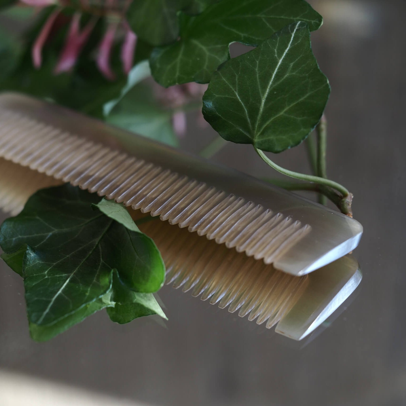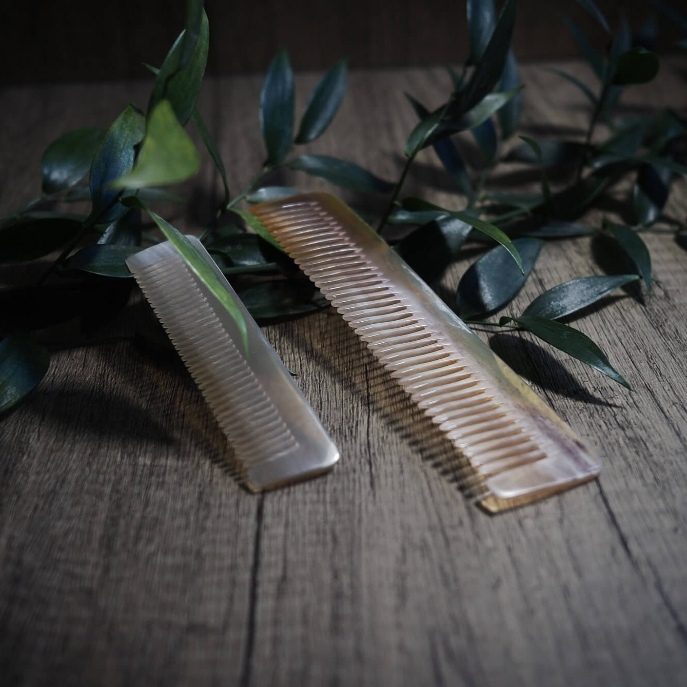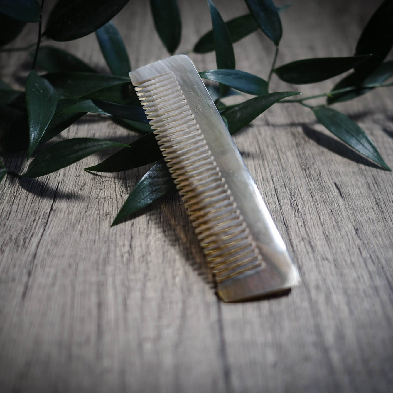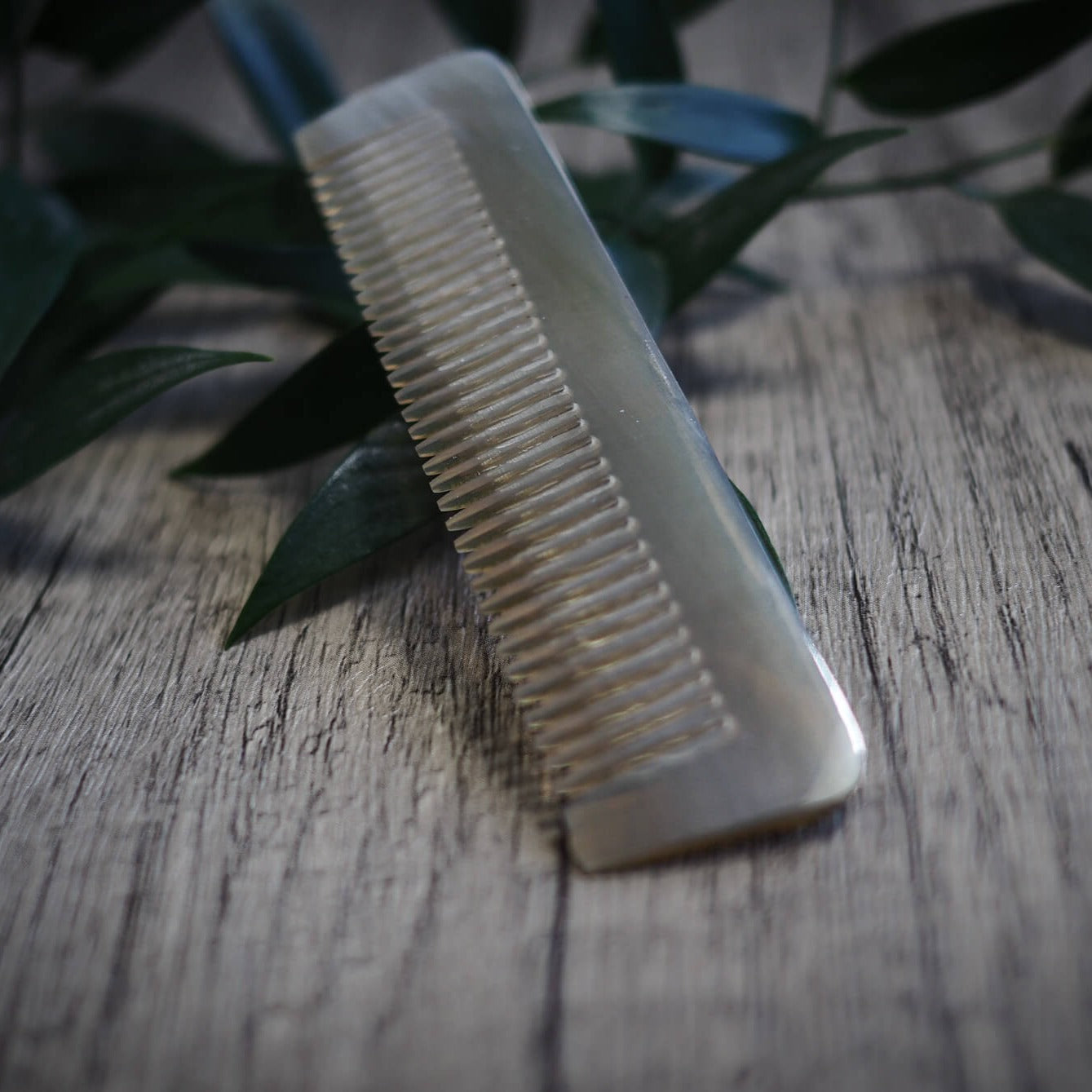 Denna vår minsta kam är lämplig till bl.a. skägget, snabba hårfixet eller till dockor. Enkel att ha med sig och klassisk formgivning. Tillverkad i horn från kor, vilket är det bästa materialet till kammar. Hornet sliter mindre på håret än moderna material, samt att det inte skapar någon statisk elektricitet när man kammar. Så man slipper en ofrivilligt vild frisyr. Hornets färg kan variera från ljus vit till brun och svart.