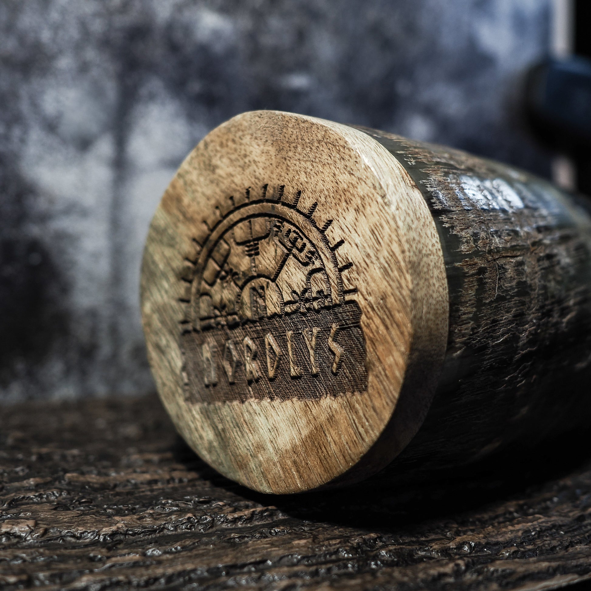 Det här är kruset för den som kan dricka som Tor och han tömde nästan världshavet ur ett horn. Det praktiska handtaget gör också kruset lätt att hänga i bältet så att muggen alltid är klart. Om man inte är så törstig att man vill svepa en sån här bjässe, så kan man även använda den som tillbringare eller kanna. Modellen är väldigt stryktålig men passar sig inte för uppvärmda drycker. Insidan är polerad och lackerad.