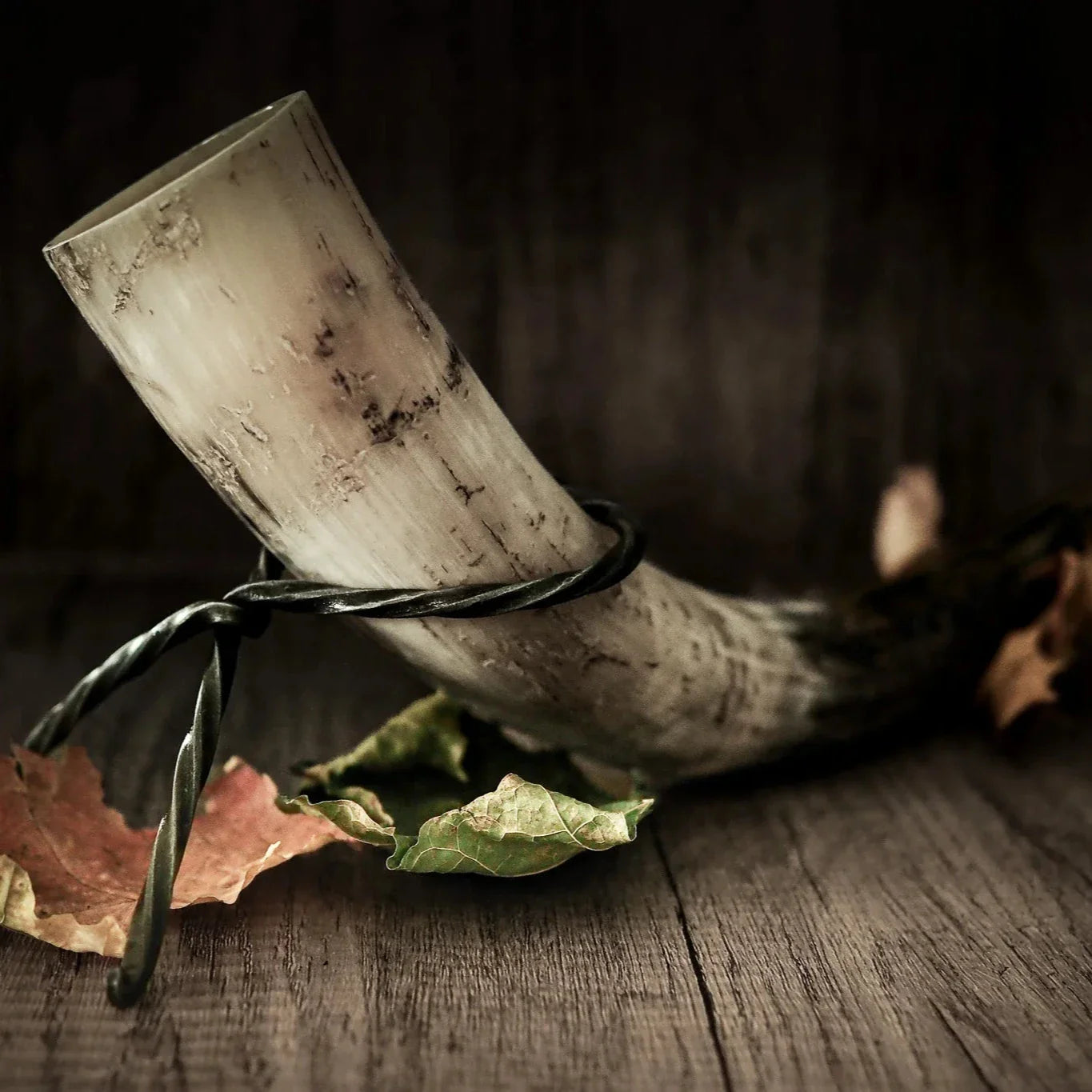 Paketpris med horn och ett handsmidet hornställ tillsammans. Perfekt storlek för en stor öl men kan användas för alla sorters drycker. Lika bra till festen som till fjällvandringen. Handgjort i naturligt oxhorn som har samma låga vikt som plast men är mycket mer hållbart. Du kan välja mellan två olika finishar på hornets utsida, en högpolerad och en där vi sparat mer av den naturliga ytan.