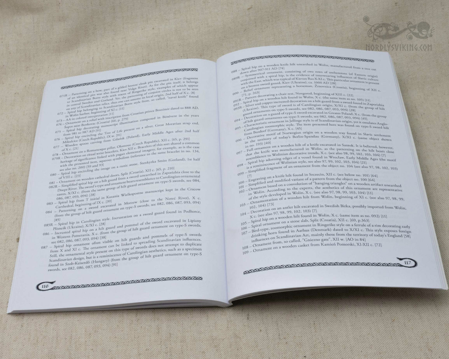 Den första boken i serien av tre böcker som handlar om vikingarnas mönsterspråk och design. I denna utgåva hittar du 343 olika original mönster hämtade från vikingatida fynd. Längst bak i boken finns även ett register med beskrivning av vartifrån originalet kommer, från vilken tidsperiod och från vilket föremål det är hämtat.