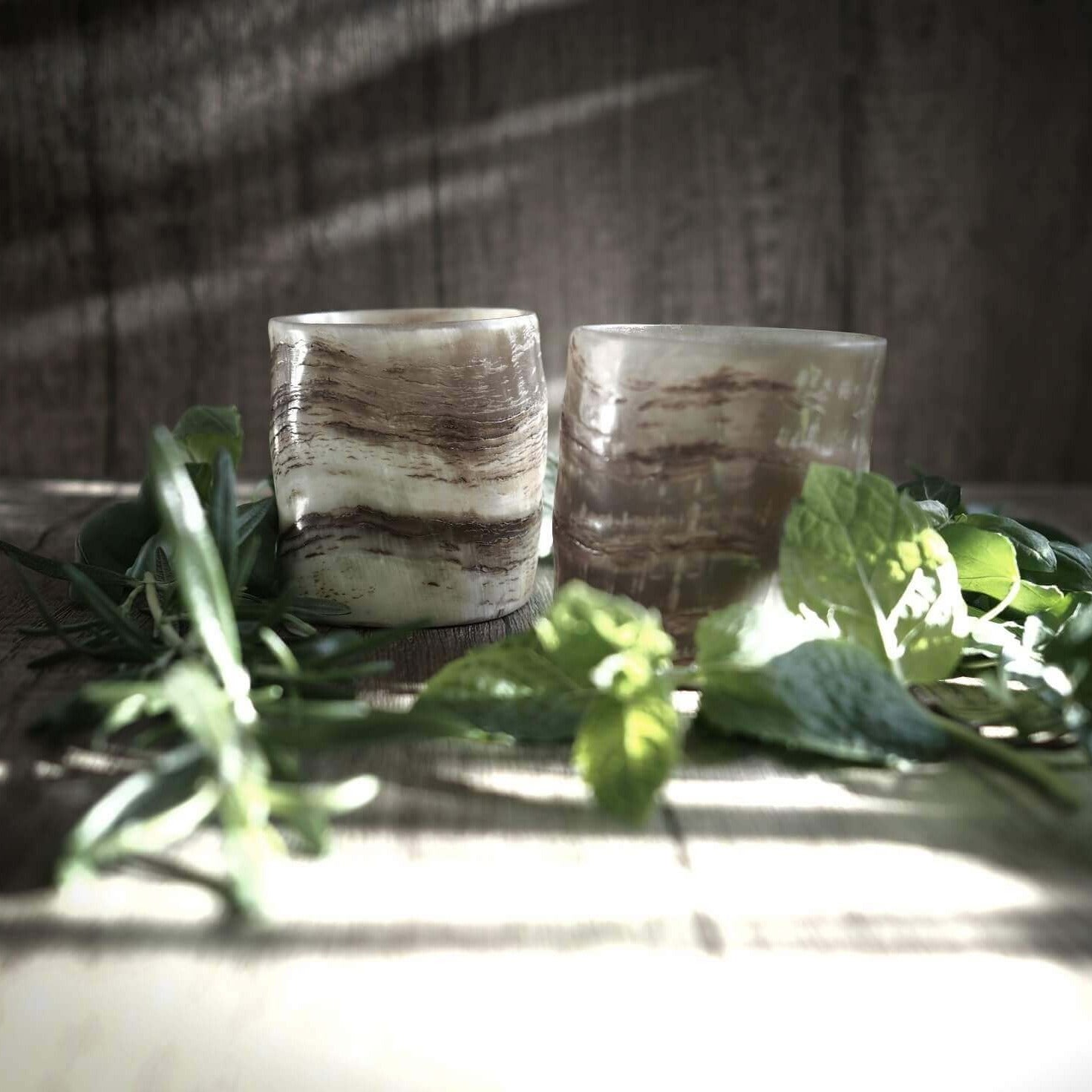 Paket med fyra stycken vackra whiskyglas i horn med en naturlig finish. Glasens fina proportioner och naturliga färgskiftningar gör dem till ett blickfång i vilket sammanhang som helst. Känslan av horn är ett varmt, naturligt intryck med en mjuk känsla när man dricker. Hornets naturliga egenskaper gör det även isolerande, vilket hjälper till att hålla temperaturen på din dryck jämn. Glaset är något brett i förhållande till höjd, vilket varit populärt till whisky de senaste åren. Botten består av trä och är omsorgsfullt anpassat till hornet och pressat på plats med värme.